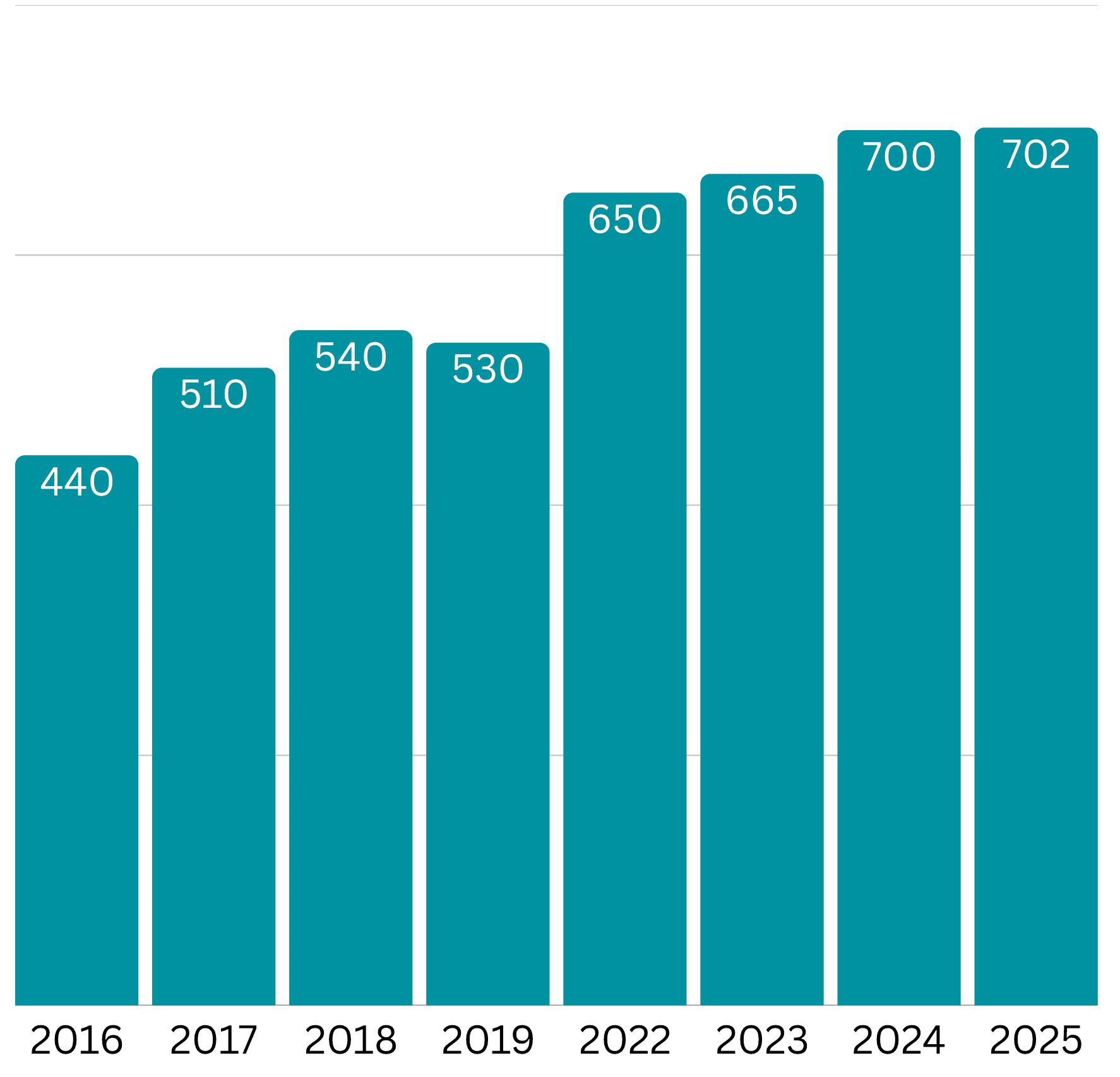 The years 2020-2021 are excluded due to CONVERGE being held virtually during the pandemic.